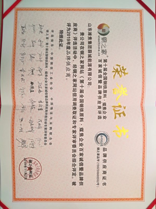 品牌供應商榮譽證書